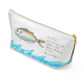 泳いでいると見かける魚を いつでも所有している感覚を味わえるポーチ。 表面はゆるい解説、裏面はお魚の色合いを再現しています。