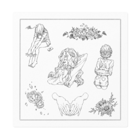 ステッカー - 160 x 160 (mm)お好みの形に切り抜いてご使用ください。 可愛い、アンニュイ、ラフスタイルな女の子のセットにお花モチーフのアイテムを添えて。 この商品はpixivFACTORYで作られた商品です。サンプル画像は完成イメージのため、実物と異なる場合があります。