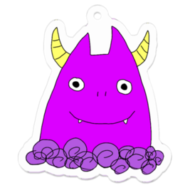 LINEスタンプ「魔界のゆかいな仲間たち」のぱぱおうさまのアクリルキーホルダー。 魔界の王様なのに責任感のなさそうな顔をしていて、気持ちが高ぶると溶けてしまいますが(電子レンジで戻ります)愛妻家で家族想いの優しいお父さんです。