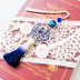 三日月宗近モチーフのブックマーカーです。 髪にさしたり、帯にさしたり、本に挟んだりと多用途にお使いいただけます。 モチーフ部分だけで11-12cmと長めですので、タッセルを外してのご注文も可能です。 タッセルなしでのご購入はメッセージにて受け付けしておりますのでよろしくお願いします。 水引、廃盤のスワロフスキー、ホタルガラス、手染めのタッセル等を使用しております。 水引は曼荼羅結びになっており、コーティング剤を塗布してあります。多少形崩れや水濡れに強くはなりますが、防水効果が高い訳ではありませんので雨などにはお気をつけください。 こちらは簡易梱包になります。 プレゼント梱包をご希望の場合はプレゼント梱包を作品と同時にご購入頂きますようよろしくお願いします。