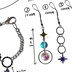 襟元の星のような黒い飾りをイメージした黒い四芒星の下で、オーロラカラーに輝く水色とピンクのルナフラッシュのビーズが揺れます。