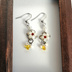 とても小ぶりな花に、小狐丸の眼の色の赤いガラスビーズ。 白と山吹色を配した小さめミニピアスです。 イヤリングとの交換可能(無料)ですので、ご購入の際にお好みの金具でご購入下さい。 ●アレルギー対応商品について 当店ではピアス、イヤリング、チェーン、アジャスター等にサージカルステンレス316を使用時明記しております。 体質には個人差がありますので、必ずしもアレルギーが出ないという保証ではございません。 樹脂ピアスも取り扱っておりますので、そちらもご検討下さい。 ●色褪せ・錆について ステンレス以外の、錆びやすい材質のパーツとの組み合わせの場合、そのパーツの錆びがステンレス表面に付着し「もらい錆」により錆びてしまうケースがございます。 その際は錆びをすぐに除去するようにしてください。 また、水に濡らしたりアルコール・汗等が付着しないようご注意下さい。 ●レジン作品について レジン作品は非常に繊細な為、強い衝撃を与えたり、高温・直射日光に長時間さらさないようご留意下さい。 また、水濡れやアルコール、汗などは劣化の原因となる為、触れないようにご注意下さい。