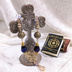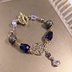青紫の電気メッキガラスビーズ、黒金ビーズ、蔦のゴールドパーツを繋げたブレスレットです。 マンテルはフラワーモチーフを使用しています。 ----------------- 〈仕様〉 ・手首周り:約16cm ・ガラスビーズ、金属ビーズ、アクリルパーツ等を使用 ・マンテルは合金製です。 基本は手首周り約16cmの長さでお届けいたしますが、 長さ調整可能です。 ご使用になる手首の長さを測ってメッセージでお気軽にご相談ください。 (購入前・購入後いずれでもOKです) 〈ご注意〉 ・仕上がりには個体差がございます。 ・レイアウトに使用している小物類は同梱いたしません。予めご了承ください。 ・写真の映り方等により現物と色味に差異がある場合がございます。ご了承ください。 ・ハンドメイド作品としてお楽しみいただけますと幸いです。 ・お手入れの際は乾いた柔らかい布で優しく拭いてください。 アルコールを含むウェットティッシュのご使用はお控えください。 ご不明な点はお気軽にお問い合わせください。
