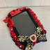 硬質デコケース B7サイズ L版写真サイズ ブロマイドケース レッド×ブラック 赤×黒 加州清光イメージケース 【サイズ】 縦約18.5×横約14.5cm 一般的なブロマイドサイズのデコケースです。 縦型、右側よりブロマイドの出し入れができます。 【使用素材】 ・赤のサテンリボン ・黒のオーガンジーリボン ・黒に金プリントのリボン ・黒のブレード ・赤のハートビジューデコパーツ ・黒薔薇のデコパーツ ・赤とクリアのビジュー ・裏面:黒レースフェルト貼り、ボールチェーンなどを通せるループリボン付き 刀剣乱舞・加州清光イメージカラーで作成致しました。 ○●○硬質デコケースについて○●○ ・素人製作のハンドメイドです。 ・接着剤(グルー)のはみ出しがある場合があります。 ・硬質ケースは100均の未使用のものですが、初期傷や製作過程の傷があることがあります。 ・写真の色味は実物と異なることがございます。ご了承ください。 ・ご不要になった際は、売らずに破棄してください。 【環境】 喫煙者無し/ペット(犬)ありです。 アレルギーのある方はご遠慮ください。 【梱包・発送方法】 水濡れ防止、プチプチ一重巻きで発送いたします。 梱包にかかるお値段を安くするため、一部梱包材をリサイクルして使用しています。
