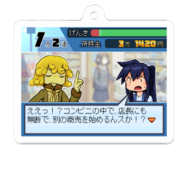 アクリルキーホルダー(コーティング) - 50 x 50 (mm)山田屋22のコンビニの一幕が、某ゲーム風っぽい絵になってアクキーになりました。よかったな~ いい話 絵の依頼を出してくれたのは左のアキュードさんを扱ってる、MAXくんからでした。ありがとう!いい話 元のサイズがちっさすぎたので、2倍に増量しました。