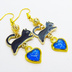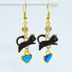 跳び黒猫とブルーハートの大人可愛いピアス エナメル ゴールドメタルビーズ マリンブルーレジン サージカル可
