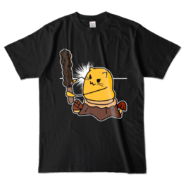 木こりが切った切り株に座って愛刀・銘刀すぎのこを手入れしているにゃんぷっぷーです。 黒いTシャツは原価たかいみたいですがこっちに入る利益は白Tと同じ100円で設定しています