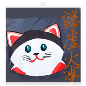 謙虚なねこのアクリルキーホルダーです、この商品はpixivFACTORYで作られた商品です。サンプル画像は完成イメージのため、実物と異なる場合があります。