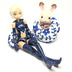 ミニチュア月型クッション/花と蔦柄・青色・2個