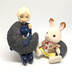 ミニチュア月型クッション/ベロア風生地・花紫・2個