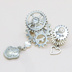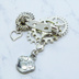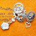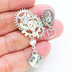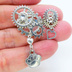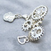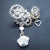 アンティークシルバー 肉球と歯車を組合せたスチームパンク風のコンパクトなブローチ バッジ ラインストーン 猫 犬