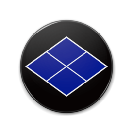 特大缶バッジ88mm 武田信玄家紋 武田菱 黒地に青