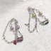 ジュエルビーズを使用した二重のブレスレットです。 パープルはハートモチーフ、グリーンは蝙蝠・剣のモチーフ付き。 ----------------- 〈仕様〉 ・手首周り:約16cm ・チェーン、シルバー、アクリルパーツ等を使用 ・チェーンはサージカルステンレス、マンテルは合金製です。 基本は手首周り約16cmの長さでお届けいたしますが、 長さ調整可能です。 ご使用になる手首の長さを測ってメッセージでお気軽にご相談ください。 (購入前・購入後いずれでもOKです) 〈ご注意〉 ・仕上がりには個体差がございます。 ・レイアウトに使用している小物類は同梱いたしません。予めご了承ください。 ・写真の映り方等により現物と色味に差異がある場合がございます。ご了承ください。 ・ハンドメイド作品としてお楽しみいただけますと幸いです。 ・お手入れの際は乾いた柔らかい布で優しく拭いてください。 アルコールを含むウェットティッシュのご使用はお控えください。 ご不明な点はお気軽にお問い合わせください。