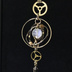 《クロノスの環》 時を司る神・クロノスの名を冠する振り子。 環の上下には本物の時計のパーツを使用し、コアには天然石が組み込まれています。 シンプルで自己主張せず、どんな服にも合わせやすい、性別を問わずお使いいただけるデザインです。 針が指し示すあなたの未来に、石の加護がありますように―― ・チェーン アレルギーを起こしにくいステンレス製。 トップと同色の55cmのチェーンが付属します。 ・使用石 古来より石はそれぞれ意味を持つとされ、パワーストーンとも呼ばれています。 使用石は《ペリステライト》。「ブルームーンストーン」の通称で知られています。 ムーンストーンと同じ長石の仲間で、こちらもやはり月の力を持っています。 闇に浮かび、穏やかな光を放つ白い月。 人の心に寄り添い、決して無理に元気を出させるのではなく、そっと見守るような、そんな優しさのある石です。 今回のシラーは青白い光。 ・ラッピング ギフトラッピングをご希望の場合は、別途【ギフトBOX】をご購入いただく事でお包みできます。 ・注意 尖ったパーツがありますので、刺したりしないようご注意下さい。 一つ一つ手作りしていますので、パーツの形など、同じ物を再度作成する事が難しい一点物です。 また、アクセサリーとしてのご使用以上の無理な負荷は想定しておりませんのでご注意下さい。