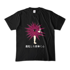 カラーTシャツ - XL - ブラック (濃色)『進化した唐傘くん』 ご眷属漫画で話題の予想より斜め上で進化した唐傘くん✨ 今度は、黒をバックとした洋服になり守ってくれるようだ❗️ 進化したい、新たな自分になりたいときは、ぜひ着てみてね👍 進化した唐傘くんは、障子を突きながらお迎えを待っているよ✨ この商品はpixivFACTORYで作られた商品です。 サンプル画像は完成イメージのため、実物と異なる場合があります。