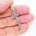 ゴシック調デザインのロザリオモチーフにゴールドカラーのメタルビーズを組み合わせたコンパクトなチャームです 程よい大きさのロザリオにワンポイントでゴールドカラーのメタルビーズを吊り下げています 普段使いにもちょっとしたお出かけにもおすすめのアイテムです マスクチャームとしてご利用の場合には紐状のマスクに適しています 耳周りにつけるとピアスのように見えます マスク以外にもチャームとしても使えますので、キーホルダーの彩りにも、デスクで飾って鑑賞もできます ※マスクチャームとしてご利用いただく際には金属が肌に触れますので、金属アレルギーの方はご注意ください ※スマホチャームとしてご利用頂けるようスマホジャックピンの追加が可能です ※スマホチャームとしてご利用の際は金属がスマホのガラス面に接触して傷などがつく場合がございますので取り扱いにはご注意ください ※こちらは金具のカニカンをナスカン(約22mm)に変更が可能です。フィット型のヒモ部分が広いマスクに適しています 「素材」 モチーフ:亜鉛合金 メタルビーズ スチール等(ピアス金具など) 「寸法」 全長(カニカン含む):約50mm ロザリオサイズ:約25mm×17mm ビーズサイズ:直径約4mm 重量:約1.6グラム 【ご注意】 ※ご使用のモニターの色の違いにより、実際の商品と色味が若干異なる場合がございます NA-MC38