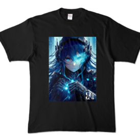 カラーTシャツ - XL - ブラック (濃色)SF世界を彷彿とさせるサイバーパンクスタイルの女性兵士が登場!近接格闘戦に備え、重武装しています。あなたも彼女のように強く、スタイリッシュに戦ってみませんか?💥🔥 #サイバーパンク #女性兵士 #近接格闘 この商品はpixivFACTORYで作られた商品です。サンプル画像は完成イメージのため、実物と異なる場合があります