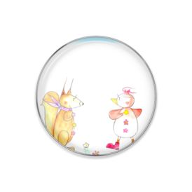 アートとメルヘンと創作の森のノスタルジック童画 「ピピとリスのチキチキの花のボタン」(画・おおくぼみつゆき)