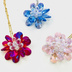 合計19個のペンダントタイプのグラスストーンを編んで作ったお花のネックレスです。 サイズはだいたい3cm前後です。 着用イメージはトルソーお写真をご覧ください。(違う形のタイプですがサイズはほぼ同一です) チェーン約55cm+アジャスター5cmです。 ※いろいろな方に手に取っていただければと思っております。販売開始直後(24時間程度目安)は、お一人様2〜3種類程度の購入にご協力いただければ幸いです。 ※一つずつ丁寧に作るよう心がけておりますが、繊細な作りとなっていますので、強い負荷などはかけないようにご注意ください。 ※できるだけ実物に近づけるように努力していますが、実物と写真の色味がちがって見える場合があるかと思います。気になる場合、購入前にお問い合わせいただければ幸いです。 ※ハンドメイド品のため、写真と若干の個体差がある場合があります。ご了承いただきますようお願いします。