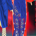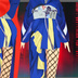 Cyberpunk is the future rave in Traditional Japanese. This Electric Kimono Sarong set. Electric Kimono Set includes: Electric Blue Kimono Sarong Dress, Stiletto Fishnet, Lace Jewel Choker, Electric Red Kimono Lace Robe, and Electric Makeup.