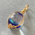 クリア・青に水色がきらめくガラスカボションを、フカネ巻きという技法で14kgfワイヤーラッピングしたペンダントトップです。 ※チェーンは付属しません。 【サイズ】 縦:約2cm 横:約1cm 【14kgf(14kゴールドフィルド)について】 芯の真鍮に14金ゴールドを熱や圧着でコーティングした素材です。 メッキよりも剝がれにくい特徴があります。 金属アレルギーが出にくい素材ですが、種類や個人差がございます。 ご了承ください。 【取り扱い・お手入れについて】 繊細な作りのため、強い力や衝撃を加えるとワイヤーがずれたり、素材が割れたり外れることがあります。 お手入れは、乾いた柔らかいコットンや布で軽く拭き取ってください。 ガラス素材は、急激な温度変化で割れる場合があります。 保管の際はご注意ください。 【発送方法】 匿名配送ネコポスにて発送致します。 【追加購入:ネックレスパーツ見本】 https://rurikara.booth.pm/items/5746255 ご希望の場合は、併せてカートに入れて購入してください。 no.s-26