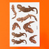 オオサンショウウオのイラストを転写タトゥーシールにしました。 画面上、白地に見える部分は実際には透明になります。 貼り付けたときには、写真とは左右反転します。 国の特別天然記念物にも指定されている大きな両生類 オオサンショウウオのイラスト3種をサイズにバリエーションをつけて収録しました。 全8点(サイズ大 3点、サイズ小 5点) 絵柄のサイズ サイズ大 幅40〜70mm、サイズ小 幅28〜49mm 水で湿らせて貼り付けるだけなので簡単。はがすこともすぐできます。 タトゥーシールとして肌につける以外にも、プラスチックや金属など表面がなめらかなものに貼り付けられます。 【素材】 市販の転写シール 透明タイプ 【サイズ】 幅100×高さ148mm(はがきサイズ) 【購入の際の注意点】 表面の粗いものにはきれいに転写できません。 水を使って転写させるため、紙など水に弱いものには転写できません。 肌に転写した場合は一日を目安にはがしてください。 シートは湿気を吸いやすい性質があるので、なるべく早めにお使いください。