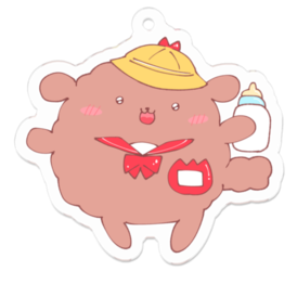 もふみんさんがキャラクター化❣️ もにゅが街でキミのこと見かけた時に「あ!もふみんだ!」ってすぐわかるように、身につけておいてネ🍼💌 サイズ→ 50 x 50 (mm)