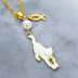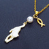 ゴールドカラー くつろぎ白猫と魚チャームの大人可愛いネックレス スワロフスキーパール 長さ変更可 ステンレス可