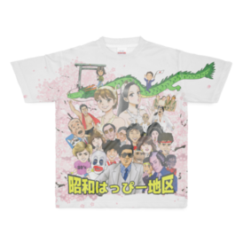 昭和はっぴーTシャツ! イラストの中にはたくさんの「めい・ふく」の懐かしい昭和の思い出と様々な想いが込められています! 楽しんでください♡ この商品はpixivFACTORYで作られた商品です。サンプル画像は完成イメージのため、実物と異なる場合があります。