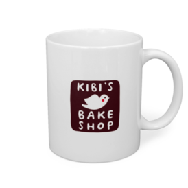 かわいらしいキビズのロゴ入りマグカップです。 オカメサブレをカップの上にそっとのせてうまく行くと良い日です。 どうぞチャレンジしてみてくださいね。