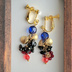 光忠三兄弟、一応コンプリートです。 クローバーカットのされた青いチェコビーズに、肩当イメージのメタルプレート、ブラックオニキスのさざれと濃淡二色の赤いガラスビーズを植物っぽいモチーフでぶら下げてみました。 大幅に作り直したんですよね…一番手間かかったかも。 次は長船コンプ挑戦します。 ピアス・イヤリング両対応ですので、お好みの金具でご購入下さい。 ●アレルギー対応商品について 当店ではピアス、イヤリング、チェーン、アジャスター等にサージカルステンレス316を使用時明記しております。 体質には個人差がありますので、必ずしもアレルギーが出ないという保証ではございません。 樹脂ピアスも取り扱っておりますので、そちらもご検討下さい。 ●色褪せ・錆について ステンレス以外の、錆びやすい材質のパーツとの組み合わせの場合、そのパーツの錆びがステンレス表面に付着し「もらい錆」により錆びてしまうケースがございます。 その際は錆びをすぐに除去するようにしてください。 また、水に濡らしたりアルコール・汗等が付着しないようご注意下さい。 ●レジン作品について レジン作品は非常に繊細な為、強い衝撃を与えたり、高温・直射日光に長時間さらさないようご留意下さい。 また、水濡れやアルコール、汗などは劣化の原因となる為、触れないようにご注意下さい。