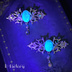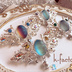 「深い霧の中に浮かぶ月、その美しさと神秘さをインスパイアしたアクセサリー。オパールの魔法のような輝きが、その月の心臓に封じ込められています。この魔法のアクセサリーは、角度を変えるたびに、あたなにさまざまな色の幻想的な輝きを贈ります。月の魅力を身にまとう、美しさを追求するあなたのための宝物です。」 ミスティムーンカボションが、アラベスクを思わせる美しいブローチ台に華麗に輝きます。 輝くクリスタルガラスが、揺れるたびに豪華な輝きを放ちます。 カボション部分はUVライトで青白く光ります(画像2枚目) サイズ ブローチ台本体 横7cm 縦3cm 使用素材:UVレジン、エフェクトパウダー、チェコビーズ、ガラスビーズ ハンドメイド品ですが1点ものではなく、今後同デザインのアクセサリーを作成、 販売する予定でおります。(素材の変更あり)