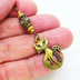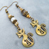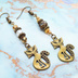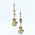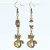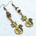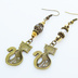 アンティークゴールド オリエンタルな猫モチーフとスワロフスキーパールとメタルビーズのアシンメトリーピアス