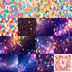商品概要 「カラフル背景とアートパック」は、合計14種75枚の高解像度画像を収録した素材パックです。このセットには、カラフルで可愛い水玉模様やキラキラ背景、ハートフレーム、ポリゴン幾何学模様、虹のように輝くドラゴンなど、色鮮やかで多彩な背景が含まれています。