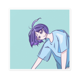 10cm×10cm 気だるい女の子のステッカー デザイン:あべまぐろ Twitter(X)→@abemagu6 この商品はpixivFACTORYで作られた商品です。サンプル画像は完成イメージのため、実物と異なる場合があります。