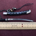 全長:75.5mm 刃渡:51.5mm アクリルケース付き 刀身:鋼材削り出し パーツ:鉄、真鍮、アルミ 柄:羊革 鞘:(中芯)プラスチック、(外皮)蛇革 日本刀を模した金属製の本格派ストラップです。 同一の規格のものが無い一部廃材を使用した手作り生産の為、工程上刀身に細かい傷などがありますが、またそれも味わいのある一点モノとなります。 日本刀はとても魅力的ですが、価格やサイズの問題で敷居が高くなかなか手を出し辛いもの。 そんな日本刀を身近に感じられるように小さなストラップにしました。 金具を外してミニドールの持ち物にもできます。 ちょっとした贈り物や外国人の方へのお土産などにもオススメです。 ※注意事項※ 刃物の分類となりますので取扱いには十分にご注意ください。 使用方法が正当・不当問わず如何なる重大な事故、事件、トラブルが発生した場合においても当サークルは責任は負いません。自己責任の上で管理をお願い致します。 1)鑑賞用ですが刃物の分類となります、先端が鋭くなっておりますので怪我やトラブルにご注意下さい。 2)刃の部分は錆びに弱い作りとなっておりますので、濡らしたり素手で触った後は布などで水分や指紋はよく拭き取って下さい。 また、抜刀時に強い力を掛けますと鎖部分が千切れ、破損や怪我の原因になりますので、抜刀や納刀はゆっくり行って下さい。 3)鞄やベルトなどの外側に付けることを想定しております、スマートフォンなど、ポケットに入れるものには付けないで下さい、怪我や画面に傷をつける恐れがあります。 4)航空機内や公共施設の立ち入りにおいて、危険物として持ち込みを制限される可能性があります。十分ご注意下さい。 5)銃刀法の規制対象(刃渡り55mm)以下のサイズではありますが、所持の状況(袖の下に隠し持つなどの怪しまれるような携帯方法)によっては軽犯罪法が適用される可能性があります。