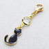 マスク・スマホチャーム ゴールドカラー 黒猫シルエットモチーフとラインストーンを組合せたチャーム 金具変更可