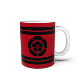 マグカップ 織田信長 家紋 織田木瓜 赤地に黒縞