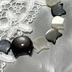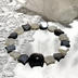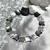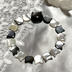 【猫好き専用】シルバーオブシディアン(黒曜石)、天然貝のブレスレット ブラック系、モノトーン系