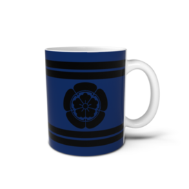 マグカップ 織田信長 家紋 織田木瓜 青地に黒縞