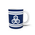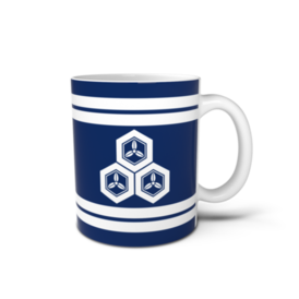 マグカップ 直江兼続家紋 三つ盛亀甲に三つ葉 青地に白縞