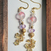 素材整理をしていたら、過去に買った桜彫りの水晶ビーズが出てきたので、ちょうど仕入れたばかりのゴールドのトライアングルカットビーズと合わせて、蜂須賀を作ってみました。 いざ撮影と金具を撮影台に乗せたら「え?屈折違う!これ本水晶じゃん!」とびっくりしました💦 いやー、絶対ガラスだと思い込んでたもので…という訳で、桜付き本水晶の一品です。 ピアス・イヤリング両対応ですので、お好みの金具でご購入下さい。 ●アレルギー対応商品について 当店ではピアス、イヤリング、チェーン、アジャスター等にサージカルステンレス316を使用時明記しております。 体質には個人差がありますので、必ずしもアレルギーが出ないという保証ではございません。 樹脂ピアスも取り扱っておりますので、そちらもご検討下さい。 ●色褪せ・錆について ステンレス以外の、錆びやすい材質のパーツとの組み合わせの場合、そのパーツの錆びがステンレス表面に付着し「もらい錆」により錆びてしまうケースがございます。 その際は錆びをすぐに除去するようにしてください。 また、水に濡らしたりアルコール・汗等が付着しないようご注意下さい。 ●レジン作品について レジン作品は非常に繊細な為、強い衝撃を与えたり、高温・直射日光に長時間さらさないようご留意下さい。 また、水濡れやアルコール、汗などは劣化の原因となる為、触れないようにご注意下さい。