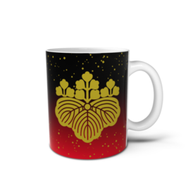マグカップ 織田信長 豊臣秀吉 家紋 五三の桐 黒地に赤 金箔