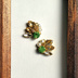 マーキス型のビジューを使ったよくあるデザインなんですが、一度作ってみたかったんですよね。 ちなみに公式にまんばの瞳の色は『翡翠色』と定義されたようなので、ちょうど良い色のビジューを使ってみました。 実は、マーキス型も微妙にカラーリングを変えています。 ピアス・イヤリング両対応ですので、お好みの金具でご購入下さい。 ●アレルギー対応商品について 当店ではピアス、イヤリング、チェーン、アジャスター等にサージカルステンレス316を使用時明記しております。 体質には個人差がありますので、必ずしもアレルギーが出ないという保証ではございません。 樹脂ピアスも取り扱っておりますので、そちらもご検討下さい。 ●色褪せ・錆について ステンレス以外の、錆びやすい材質のパーツとの組み合わせの場合、そのパーツの錆びがステンレス表面に付着し「もらい錆」により錆びてしまうケースがございます。 その際は錆びをすぐに除去するようにしてください。 また、水に濡らしたりアルコール・汗等が付着しないようご注意下さい。 ●レジン作品について レジン作品は非常に繊細な為、強い衝撃を与えたり、高温・直射日光に長時間さらさないようご留意下さい。 また、水濡れやアルコール、汗などは劣化の原因となる為、触れないようにご注意下さい。