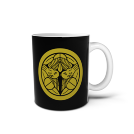 マグカップ 上杉謙信 家紋 竹に飛び雀 黒地に金色