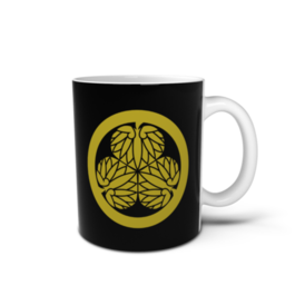 マグカップ 徳川家康 水戸黄門 家紋 三つ葉葵 黒地に金色