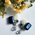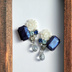 新しいパーツを仕入れましたので、この青のレクタングルは長義だなと。パールホワイトのレジン薔薇に、ライトアゾレと、バミューダブルー、クリスタルのビジューを添えてクラシックかつ上品に。 シルバーの斑レインドロップッビーズで、軽めに仕上げています。 金具は背面貼り付けです。 ピアス・イヤリング両対応ですので、お好みの金具でご購入下さい。 ●アレルギー対応商品について 当店ではピアス、イヤリング、チェーン、アジャスター等にサージカルステンレス316を使用時明記しております。 体質には個人差がありますので、必ずしもアレルギーが出ないという保証ではございません。 樹脂ピアスも取り扱っておりますので、そちらもご検討下さい。 ●色褪せ・錆について ステンレス以外の、錆びやすい材質のパーツとの組み合わせの場合、そのパーツの錆びがステンレス表面に付着し「もらい錆」により錆びてしまうケースがございます。 その際は錆びをすぐに除去するようにしてください。 また、水に濡らしたりアルコール・汗等が付着しないようご注意下さい。 ●レジン作品について レジン作品は非常に繊細な為、強い衝撃を与えたり、高温・直射日光に長時間さらさないようご留意下さい。 また、水濡れやアルコール、汗などは劣化の原因となる為、触れないようにご注意下さい。