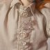 ベージュの無地でシンプルなシャツをつくりました✳︎可愛さギュぎゅッと詰め込んだワンコインシリーズです。 ボタンはランダムで違うものを縫い付けていて、ちょっとだけ変わったシャツになってます☺︎(テディベアのクリアボタンがさり気ないけどカワイイ🧸!) 下にロンT着込んだり お気に入りのカーディガン羽織ったり 秋冬のオシャレいっぱいたのしんでネ✳︎