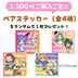 ======お願い====== この商品は購入できません。【ノベルティのご説明用のページ】です。 仕様上、価格設定をしなければ表示できないため、間違った購入を防ぐため高額な「1000000円」に設定しております。 =============== ご購入者対象のプレゼントキャンペーン! 【1,100円ご購入ごとに】 「ペアステッカー」(全4種) をランダムで1枚プレゼント♪ (サイズ約5cm角) ↓諸注意↓ ※「#とちぎけんV25 公式通販BOOTH」で1,100円以上お買い上げのお客様が対象です。送料は含まず、商品代金のみが対象ですのでご注意ください。 ※お一人様1会計につき、対象のノベルティを購入金額に応じた枚数をお送りさせていただきます。絵柄はお選びいただけません。 ※複数枚お送りさせていただく場合、同じ絵柄が同梱されたりご希望の絵柄が同梱されない場合がございますので、予めご了承ください。 ※数量に達した場合はキャンペーン終了となり、事前のお知らせはいたしません。またノベルティの有無につきましては、お問い合わせいただいてもお答えいたしかねますので予めご了承ください。 ※キャンセル分が出た場合、先着で対象条件を満たしている方に同封させていただく場合がございます。 ※バースデーなどの受注生産商品、pixivFACTORYから発送の商品(カートに入れるの上部に「pixivFACTORYで製造されます」と記載のもの)はキャンペーン対象外となります。ご了承ください。