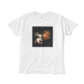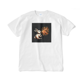 Tシャツ(短納期) - XL - ホワイト可愛らしい悪魔のうさぎが、燃え上がる炎をふんふんと吹き出している姿は、まさに心をつかまれる瞬間です!見た目は愛らしいのに、その背後に秘めた悪魔的な魅力にドキドキ。 この商品はpixivFACTORYで作られた商品です。サンプル画像は完成イメージのため、実物と異なる場合があります。